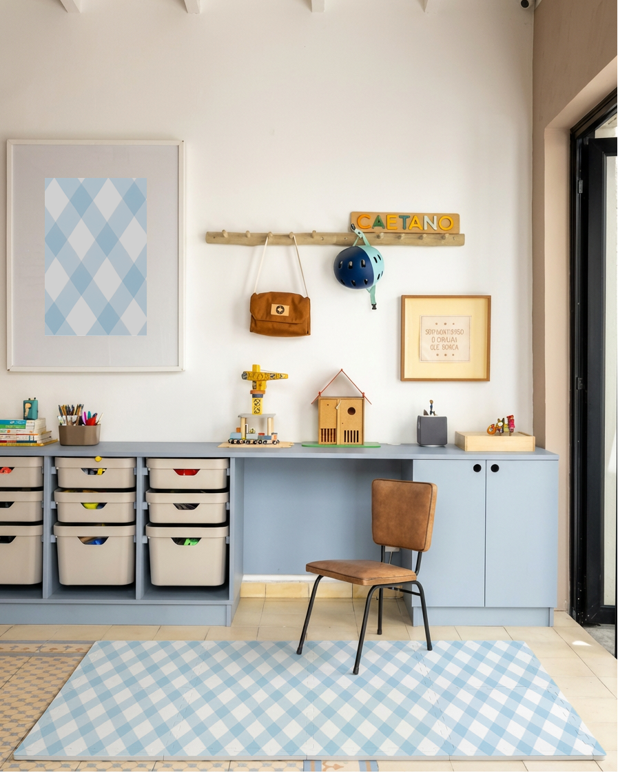 Nosso tapetinho de EVA transforma o chão em um espaço seguro e cheio de estilo para brincar.